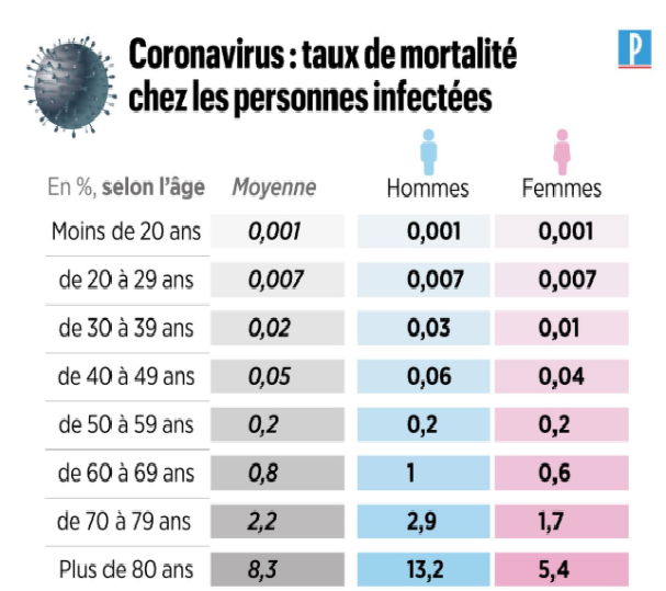 Néanmoins, il semble avéré qu’une personne de moins de 30 ans à environ 0.003 % de mourir à cause du Covid-19. Et parmi ces malheureuses victimes, il y a les nombreux cas de comorbidité. C’est-à-dire que si vous êtes cancéreux, leucémique, sous assistance respiratoire… et que vous avez été déclaré positif au #nezbouché19, avant que ces maladies très sérieuses ne vous aient tué, vous êtes comptabilisé dans les statistiques.