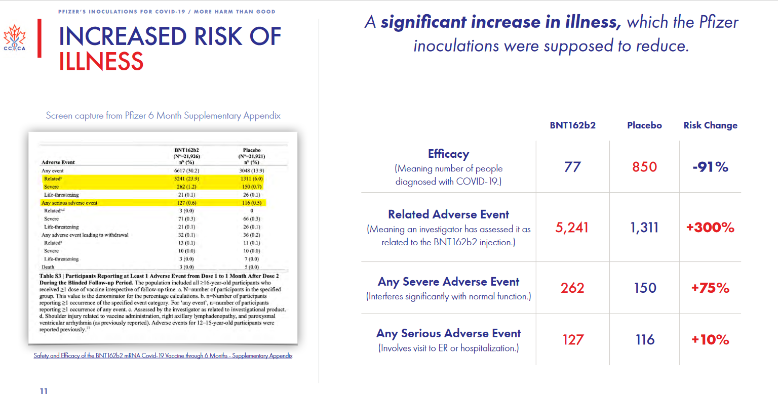 Pentru a lămuri publicul canadian cu privire la ineficiența vaccinurilor Pfizer / Comirnaty – între altele – Alianța a creat un studiu de 50 de pagini pe care l-a transpus într-un clip video explicativ. Studiul PDF, în limba engleză, intitulat More Harm then Good – Mai mult Rău decât Bine – poate fi descărcat de AICI.