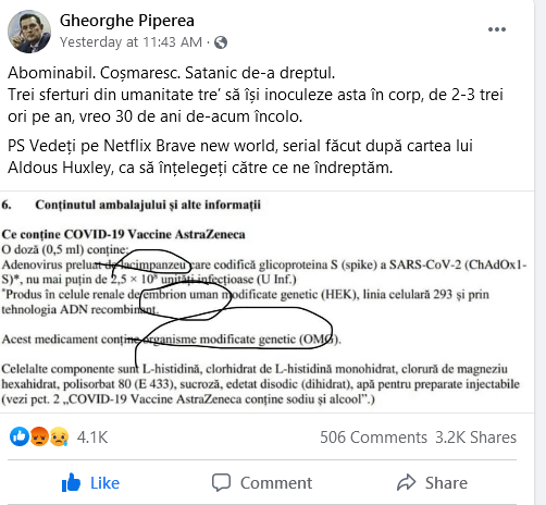 La noi, AstraZeneca este deja injectat în populație și nu înregistrăm decât TĂCERE TOTALĂ din partea forurilor bisericești, ortodoxe sau catolice, pe această temă.