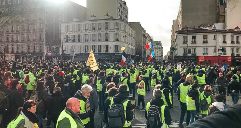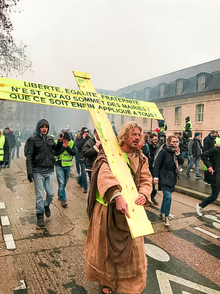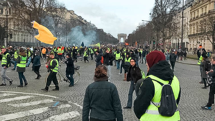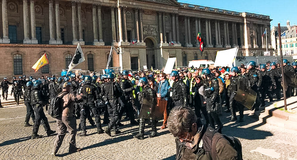 Действительно, самые первые Жёлтые Жилеты, почти половина которых состояла из женщин и пенсионеров, вскоре перестали выходить на улицы — в первую очередь из страха перед репрессиями, а также потому, что не могли идентифицировать себя с тем, что происходило на этих манифестациях. Вместо аутентичных ноябрьских Жёлтых Жилетов всё больше стали выходить левые (они стали преобладающей силой движения уже с февраля 2019), не говоря уж о том, что поиграть в “революцию” всё больше рвались феминисты, экологисты, анти-расисты, анти-капиталисты и пр. Меланшон, первоначально презиравший ЖЖ, вдруг заговорил как “левый популист”. На народном движении попытались нагреть руки и красные профсоюзы.